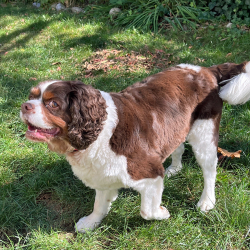 Say hello to Bucko! Bucko is a gentle and affectionate 5-year-old Cavalier with a unique and beautiful chocolate coat. He came to rescue because his owner was relocating. One look at his handsome face and big, soft brown eyes and you will succumb to his charm!