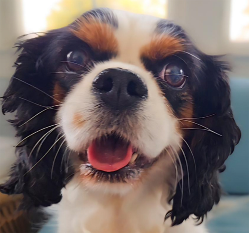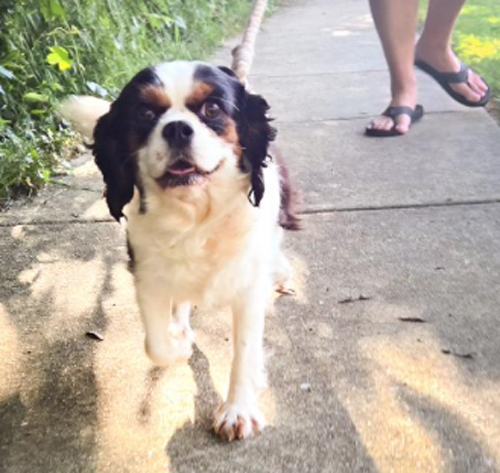 Hannah’s foster family has two Cavaliers, an eleven-year-old human girl and a nine-year-old human boy. Hannah did not know what to think boy at first. She has really come around to him, but still gets a little nervous if he gets the zoomies. Because of this, she would do best in a home without very young children, but could be a great companion for older kids (ages eight and up) who are gentle and respectful with dogs.