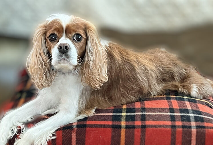 Henry is a handsome Blenheim boy who came into rescue when his owner was unable to care for his dietary needs. When Henry came to us, he had a long history of some digestive problems. The first step was to give his tummy a little rest and relaxation and then introduce him to some good rejuvenating probiotics and a new diet. Henry responded well and has had no problems in several months, but he does do better with a fresh food diet. He is a bright, affectionate, and happy boy.