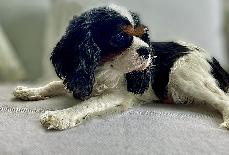 Kali is a beautiful tricolor Cavalier girl who is approximately 6 years old. She came into rescue as a surrendered breeding dog from Western PA. She has responded well to love, patience and kindness. Kali is a gentle lady who likes a quiet and tidy environment. She likes to gather objects she finds lying around. She enjoys being petted on her back and neck. Kali loves being with her people and with her foster dog sister.