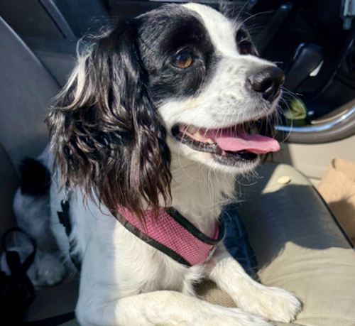 Lulu is a healthy, happy 19-pound Cavalier mix with a heart full of love and a cheerful nature. From the moment she arrived in her foster home, she fit right in, eager to make friends, and ready to share affection with everyone. Lulu has the soft eyes and sweet expression of a Cavalier, along with a playful spark that keeps her days bright and busy. Her unique coloring and prominent ears add to her charm.