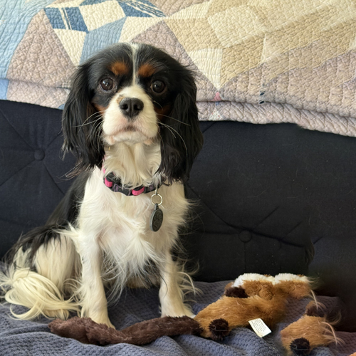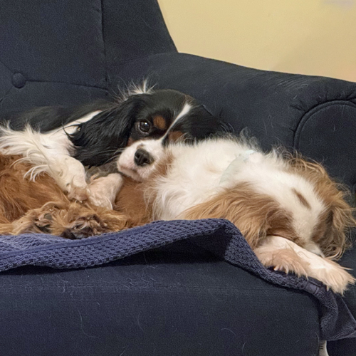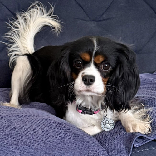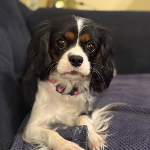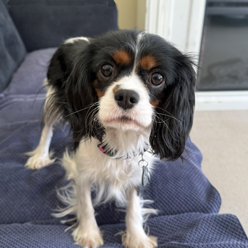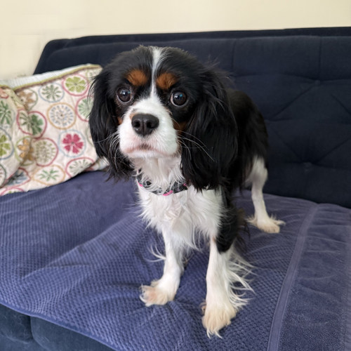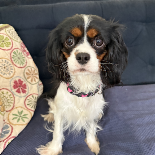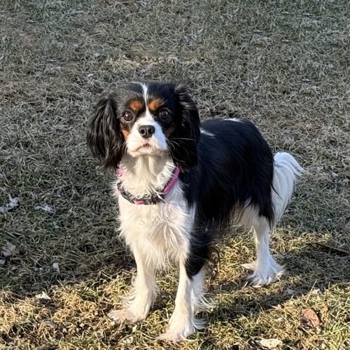 Midge is an approximately 2 1/2 – 3 year old tricolor Cavalier who weighs 14 pounds. She was released by a breeder to Cavalier Rescue USA shortly before Christmas.