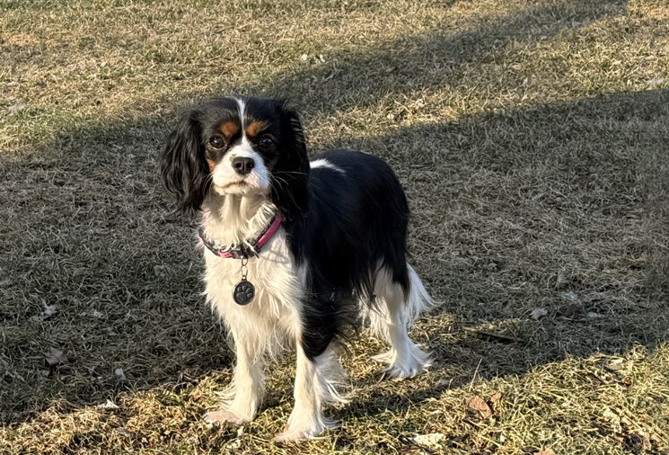 Midge is an approximately 2 1/2 – 3 year old tricolor Cavalier who weighs 14 pounds. She was released by a breeder to Cavalier Rescue USA shortly before Christmas.