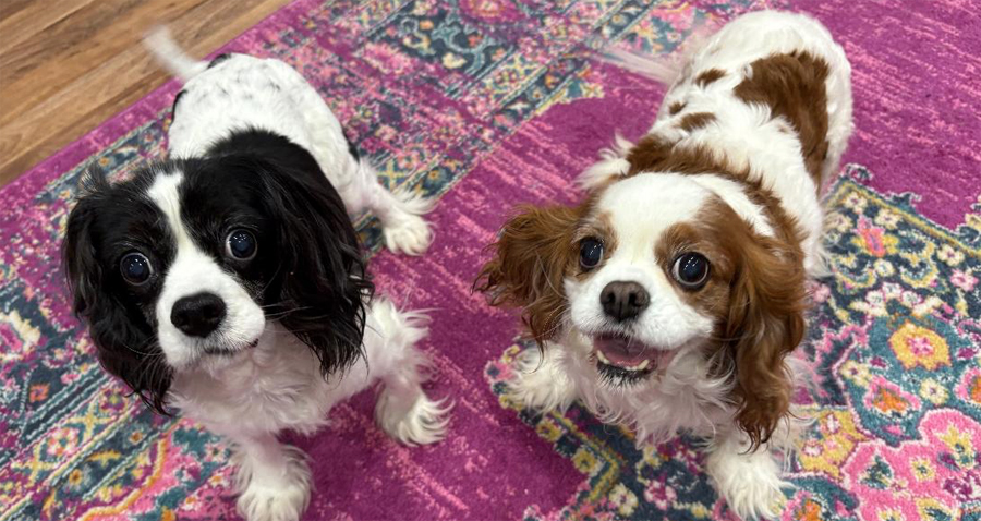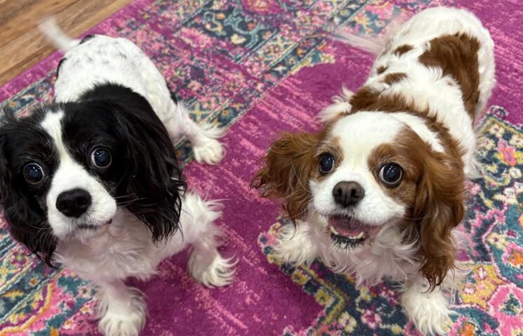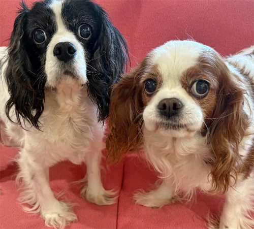 Both girls spend most of their time napping in their favorite spots. Phoebe absolutely loves sleeping on the back of the couch, especially if she can rest against someone’s shoulders. Pearl prefers sleeping on the couch next to other dogs. Both enjoy spending time with their foster family’s other Cavaliers. Neither of the girls are particularly active or enjoy playing with toys, but they will quite happily cuddle and enjoy a few treats.