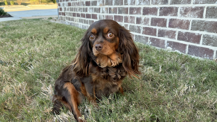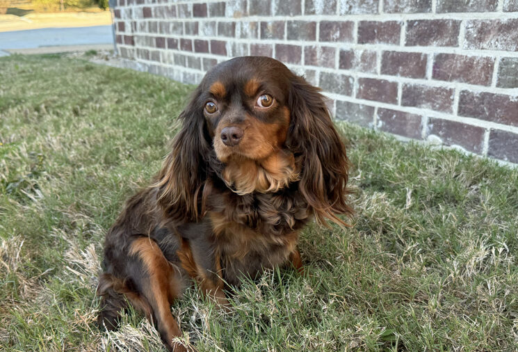 Reese (3-year-old Chocolate and Tan Cavalier King Charles Spaniel born on 09/17/2022) is your textbook Cavalier — loves people, cuddling, playing, and being the ultimate Velcro dog! She adores everyone she meets, and it only takes about five seconds for her to stare at you with her gorgeous hazel eyes to convince you that she is your dream dog!