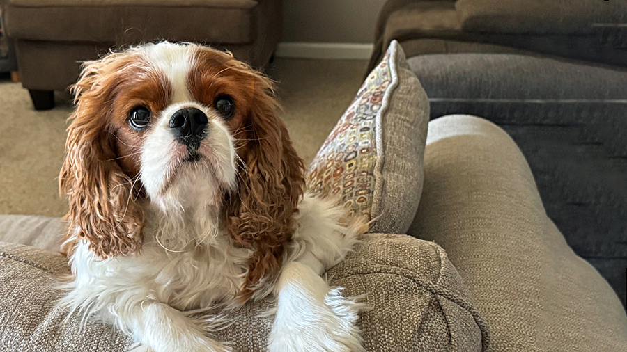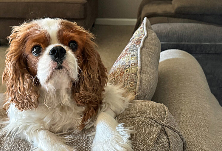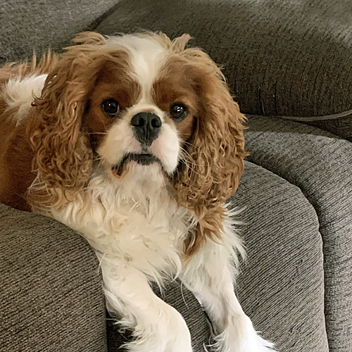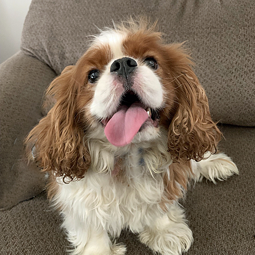 Romeo is a 5-year-old Blenheim boy, born on 11/25/20. He is a sweet, gentle love sponge who will steal your heart simply by gazing into your eyes. He’s an excellent listener who adores everyone he meets — including other dogs and even cats. Romeo is happiest when his family is together. He thrives on companionship and also enjoys a good game of fetch!