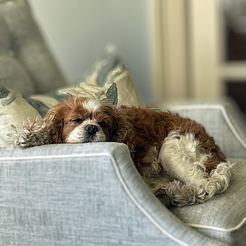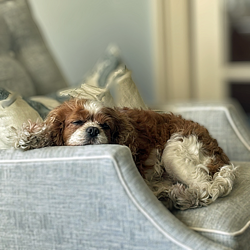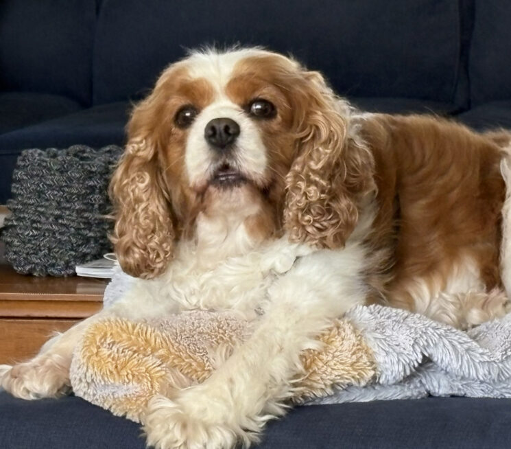 Meet the most beautiful, easy-going, and laid-back 8.5-year-old Blenheim you will ever know. Scout came to Cavalier Rescue USA from a very busy family that was not able to give her the attention that she needed. Scout was recently taken to the vet and received a clean bill of health with no heart murmurs. She did recently get her teeth cleaned with some extractions. None of this has stopped her from enjoying her life with her foster family.