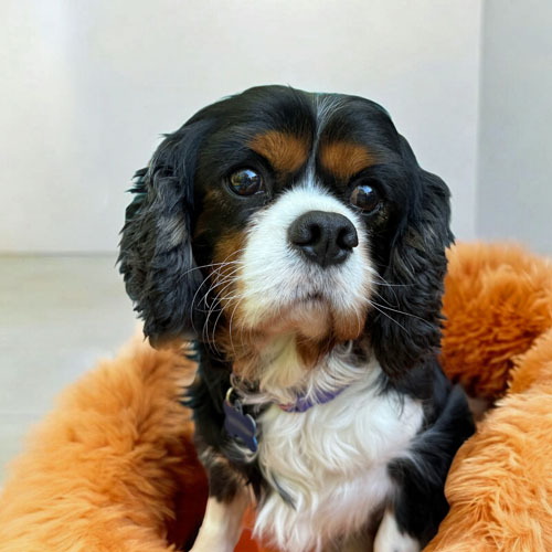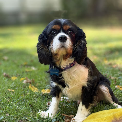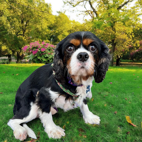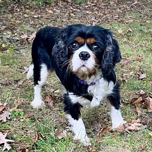 He gets along great with his 2 Cavalier foster siblings as well as the cats in his foster home. He would do well in a home with another young, small dog or as a single dog. He is generally a happy-go-lucky fella. He recently went on a Cavalier meet-up and did well meeting new people and new Cavaliers.