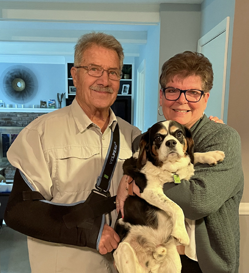 When Pug first came into rescue he would run from and growl at people, but when picked up, never showed any aggression. He would be held and petted until he could relax. This was done many times daily till now he is the first on the couch and although still apprehensive, wants to get in the middle when a person sits down and pets the other two. He can be sassy and will run after the ball, but hasn’t learned to bring it back. Pug is very treat motivated, and that will help with his progress.