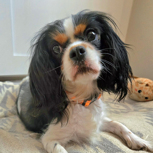 Hi! My name is Rosie and I am a tiny 13-pound bundle of chocolate love! I was given to Cavalier Rescue USA by my breeder who wanted the perfect forever home to be found for me. I am a 3-year-old (my birthday is 11-7-2022) Chocolate and Tan Cavalier and I have the biggest heart for everyone I meet. All I want in life is to share my love with my new people. I love nothing more than cuddling on the couch next to my foster mom or lounging on my furry dog bed at her feet while she works. I can’t be close enough! I have a calm personality and a gentle temperament and do not bark except when my people return home; I have to tell them just how much I love them.
