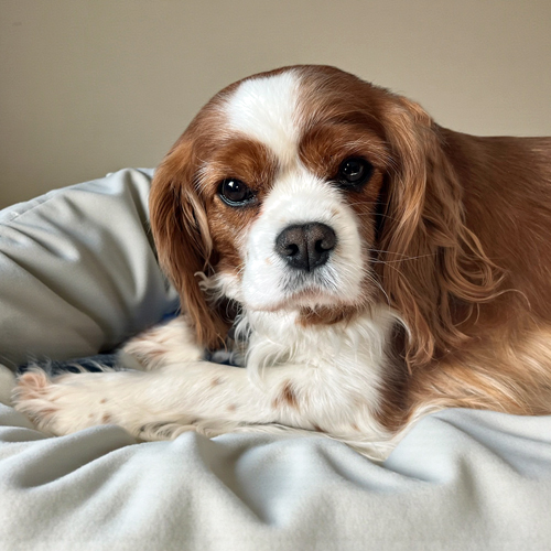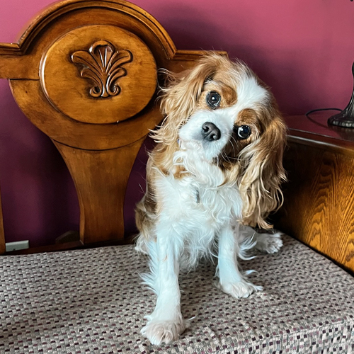Kali does not like being left alone. Her Cavalier foster sister is a great comfort to her when her foster family goes out. She is a velcro dog and likes to keep you in line of sight. She is afraid of the crate and will not be a candidate for crate use.
