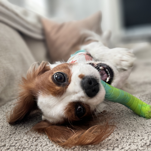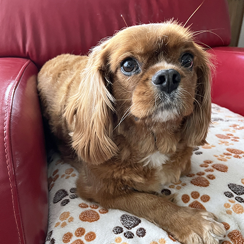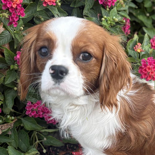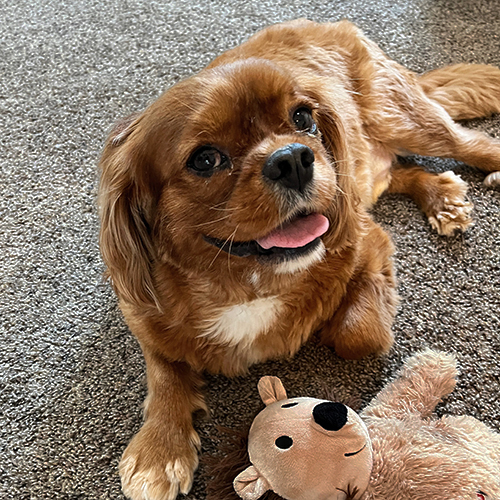 Hi! It’s me, Rollo! I’m a 19-pound, 2-year-old male Ruby Cavalier born April 26, 2023. I love tennis balls! I love tuggie toys! I love running zoomies with my foster sister! I love hanging out at the shallow end of the pool! But sometimes, I just want to snuggle with my person! I’m an honest-to-goodness love bug! I am happiest when I’m with my humans and prefer to have someone at home with me. I’m also happy to go places with you!