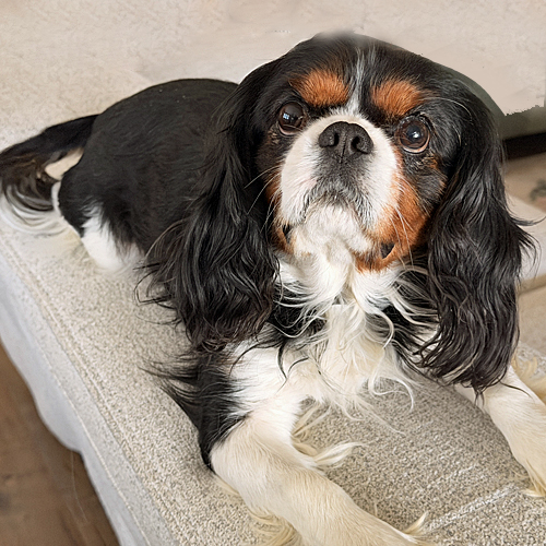 If you have a calm home with a routine and someone home during the day to keep working on Daisy’s potty training, please fill out the online adoption application and contact June at (June.cavaliers@gmail.com) to let us know of your interest in this quiet little sweetheart.