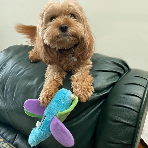 Playful, alert, and full of life, Hallie loves to keep an eye on everything happening around her. She’s a little “neighborhood watch” dog who hears every unusual sound! When she’s not perched on the back of the couch supervising the world, she’s happiest curled up in someone’s lap.