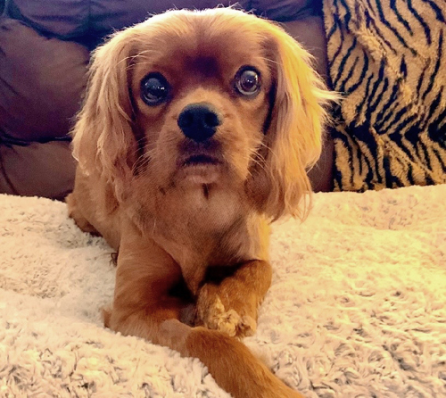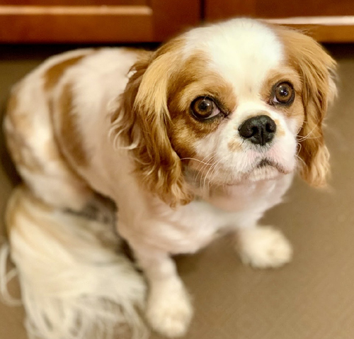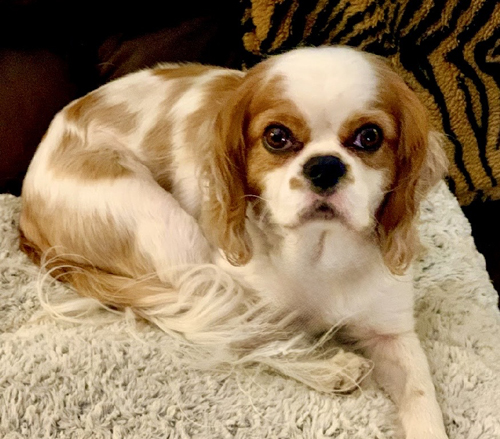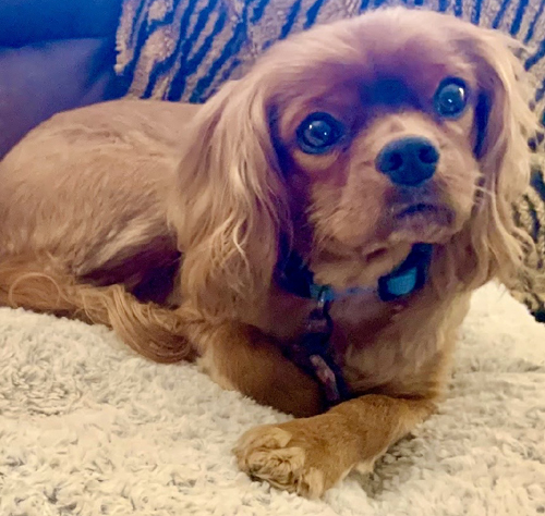 He is a nearly five-year-old (born December 30, 2020) Blenheim boy. Emmett has been to the vet and is up to date on his vaccinations, micro-chipped and neutered. He had a much needed dental with several teeth removed …but that hasn’t slowed him down!