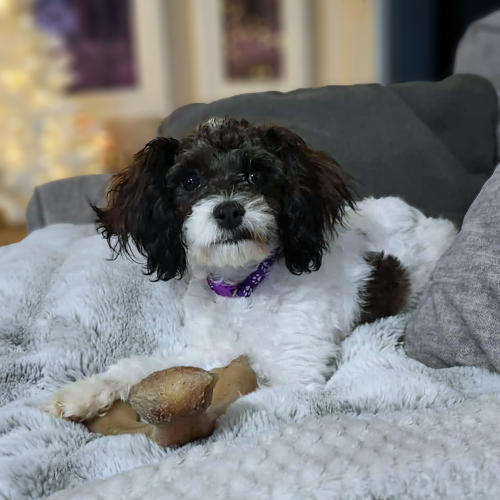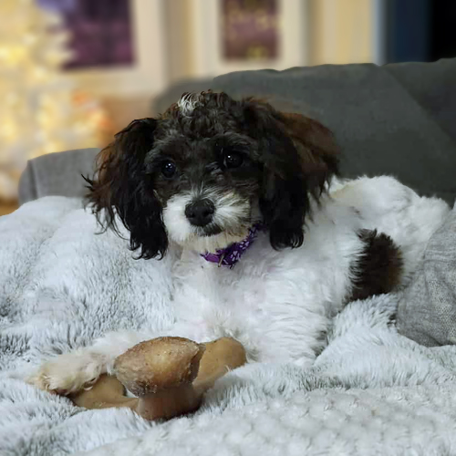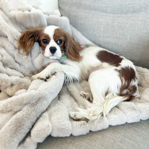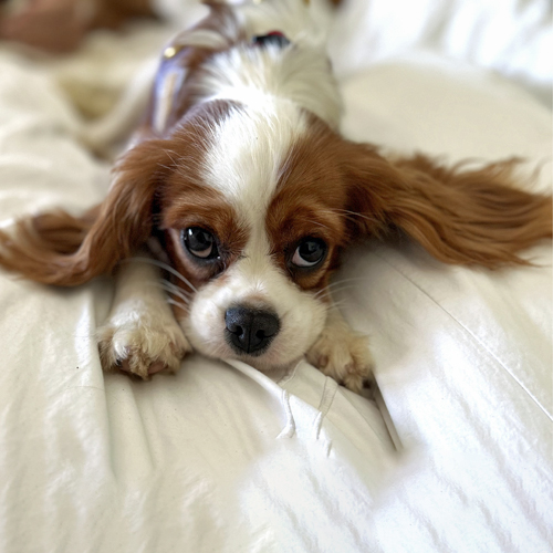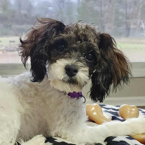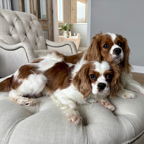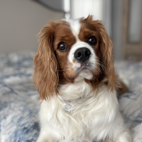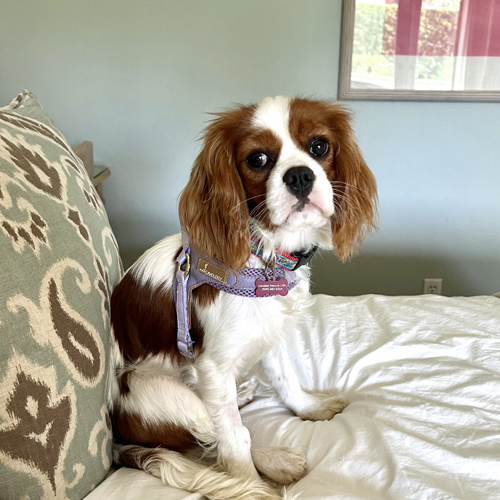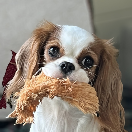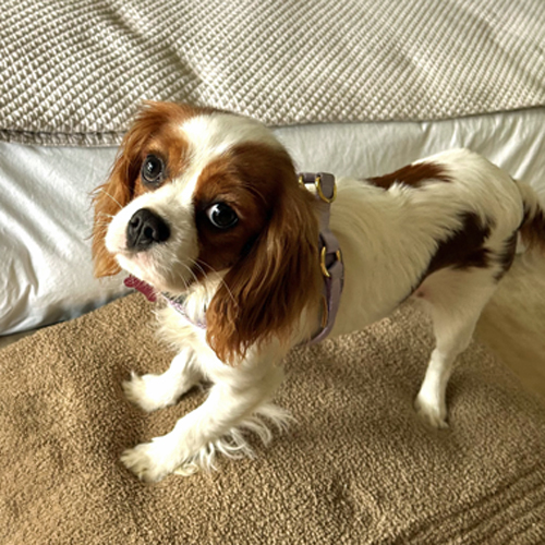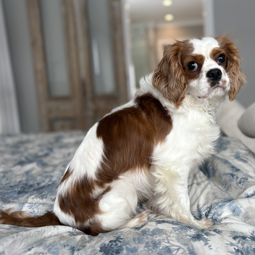 From the moment she arrived in foster care, Ava bonded quickly with her Cavalier foster siblings. She trails behind them everywhere; learning where to potty, discovering that a leash means a walk, and finding out how wonderful it is to snuggle together in a dog bed or on the couch. They’ve also been trying their best to teach her that pillow corners are not chew toys, but the overflowing toy basket absolutely is. She’s still very much a growing puppy, taking in the rhythms of home life with curiosity.