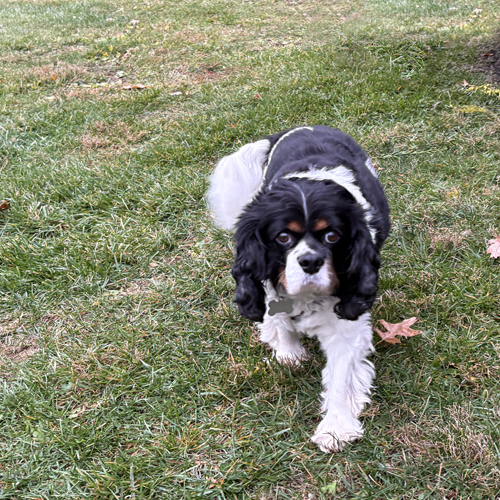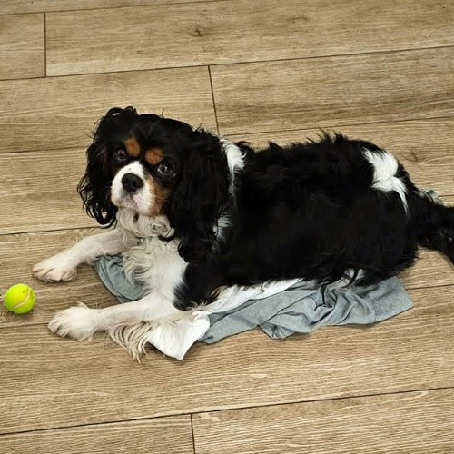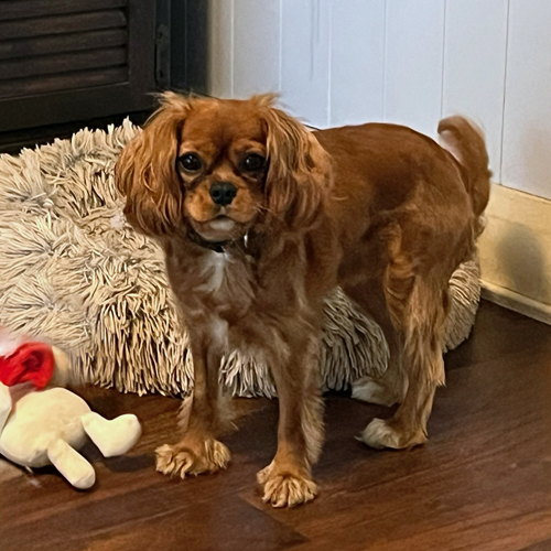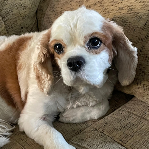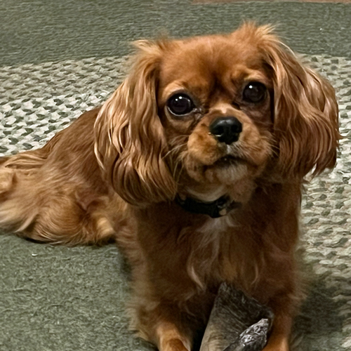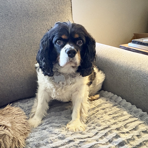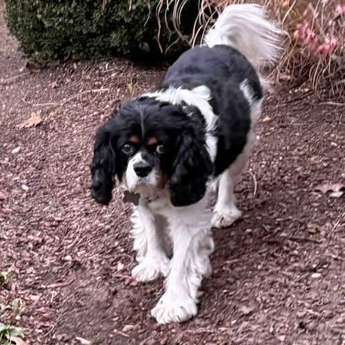 He is a nearly five-year-old (born December 30, 2020) Blenheim boy. Emmett has been to the vet and is up to date on his vaccinations, micro-chipped and neutered. He had a much needed dental with several teeth removed …but that hasn’t slowed him down!
