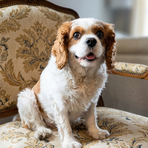 Meet Baker, a 6-year-old Blenheim Cavalier King Charles Spaniel with a tender heart and a quiet spirit who is just beginning to discover the world around him. Weighing 17 pounds, Baker is a gentle, sensitive boy who is learning, day by day, that life can be safe, loving, and full of comfort. While everything still feels very new and sometimes overwhelming, there is a sweetness in him that shines through more with each passing day.